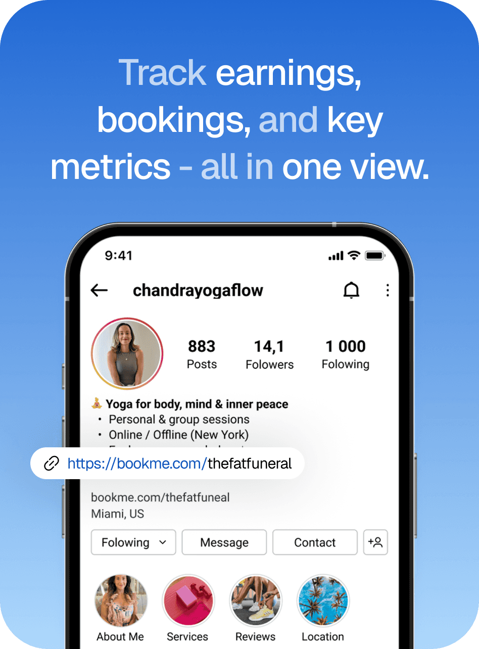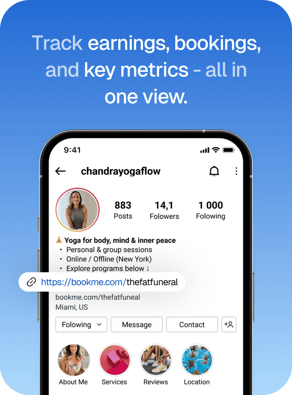 Bookme turns your followers into clients with one simple link.