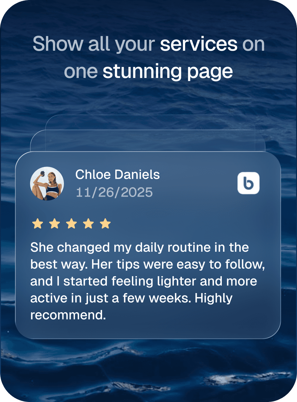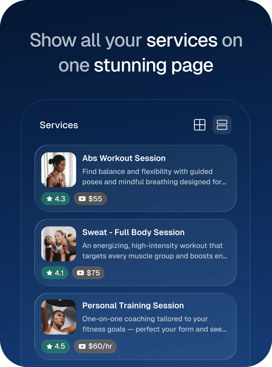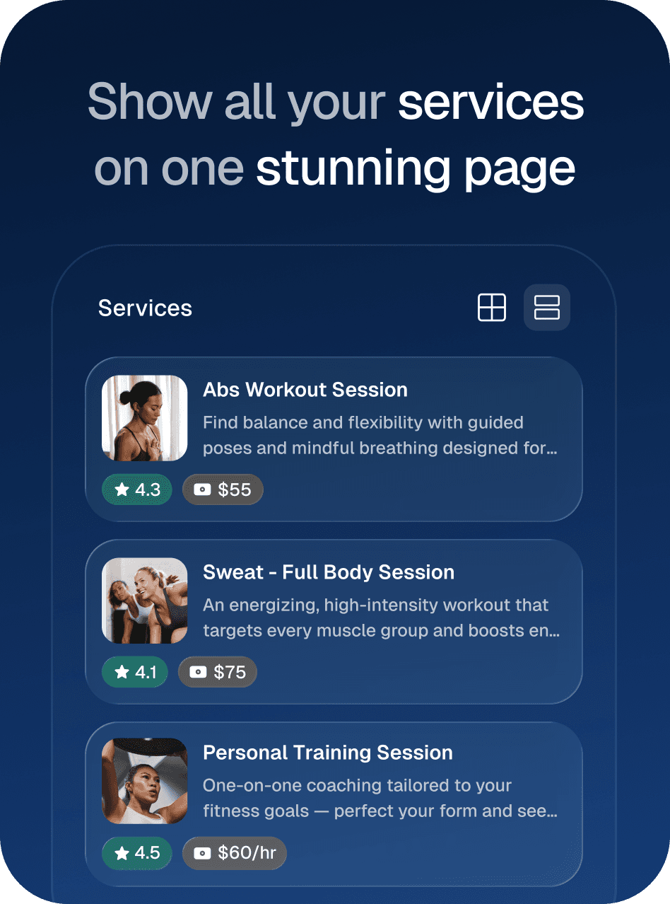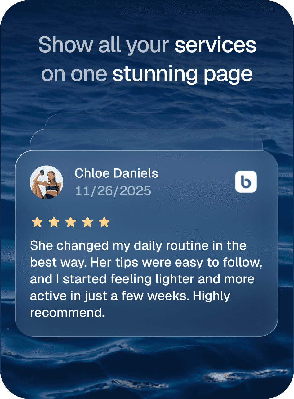 A branded page to showcase your services, reviews, pricing, & instant booking.