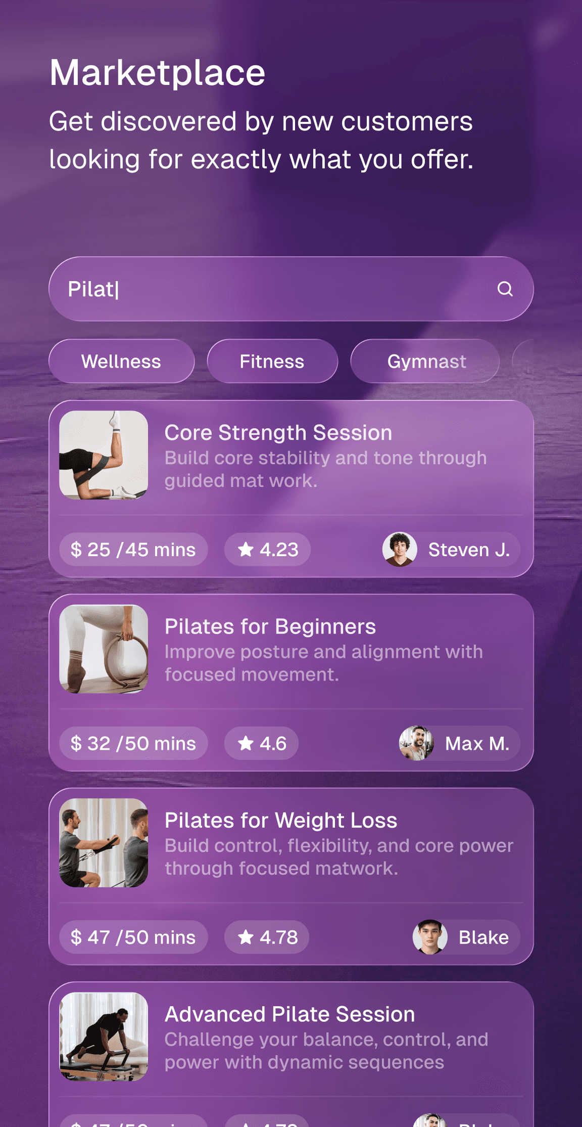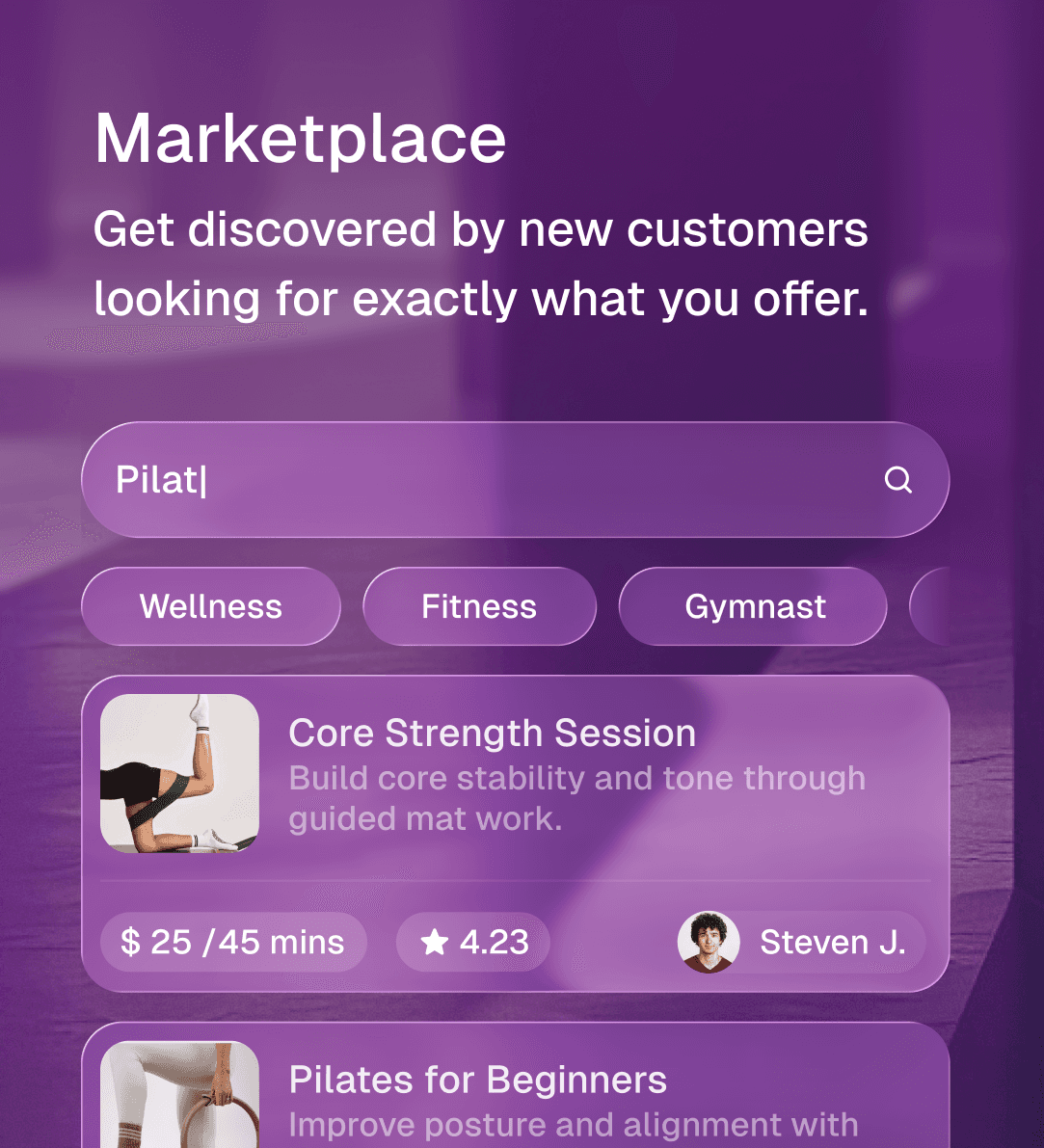 Get discovered by new clients already searching for fitness trainers and tutors.